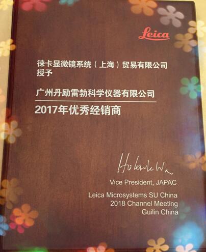 2018年1月26日,作為徠卡公司廣東省醫(yī)療及公共事業(yè)的簽約代理,廣州丹勵雷勃科學(xué)儀器有限公司(丹利集團(tuán)旗下子公司)參加了徠卡2018年度經(jīng)銷商大會暨答謝宴。2017年度,廣州丹勵雷勃科學(xué)儀器有限公司共計(jì)完成徠卡訂貨量130.6萬美金(僅寬場顯微鏡部分),YOY同比增長131%,喜獲徠卡2017年度優(yōu)秀經(jīng)銷商大獎!